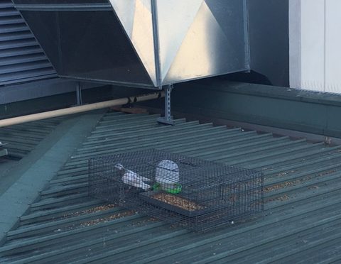 All trapping is accomplished on the tops of buildings, in areas easily seen by the birds but out of public view.